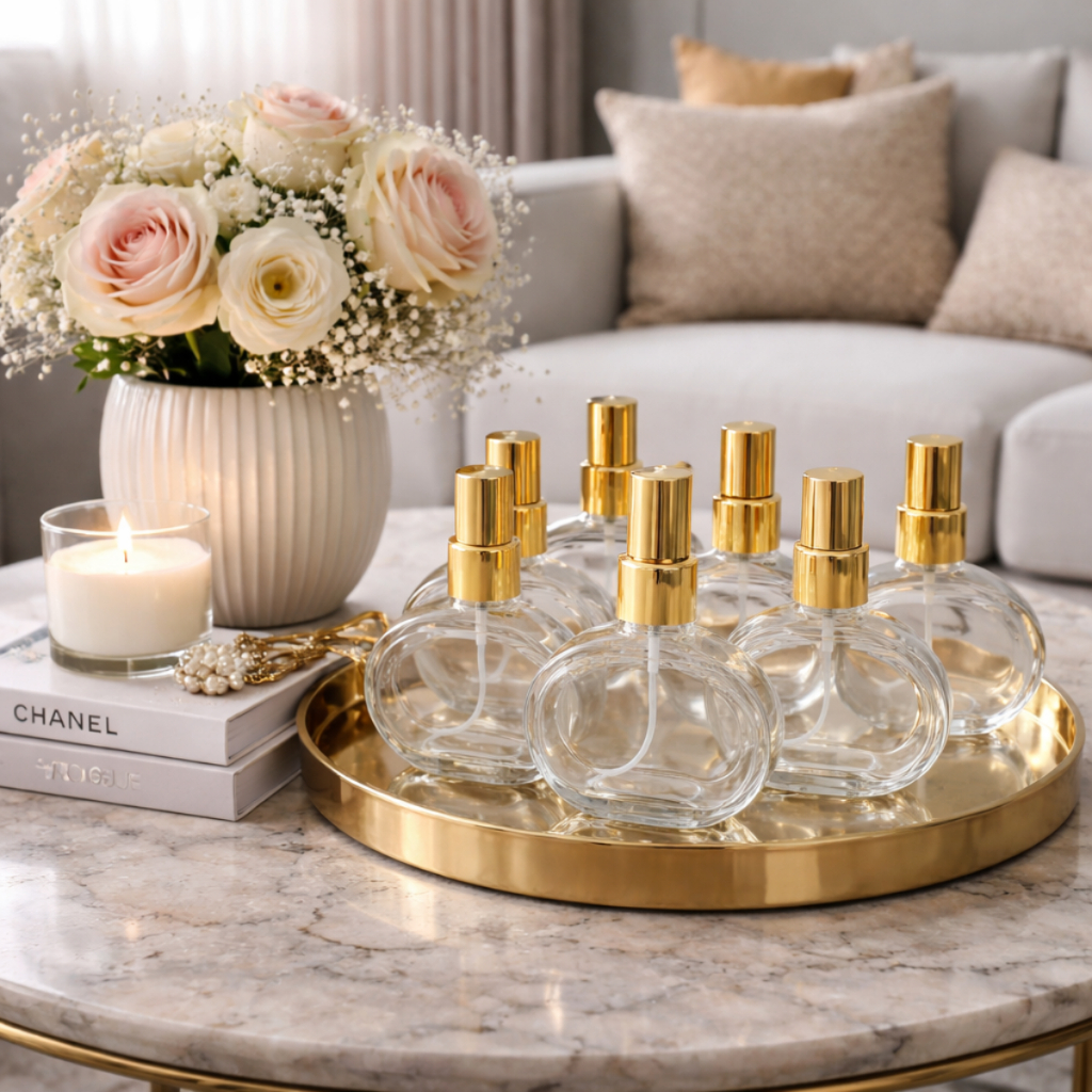 Comprar na ShopeeKit com Até 20 Frascos de Vidro Para Perfume Spray 60ml Elegante Dourado e Prata