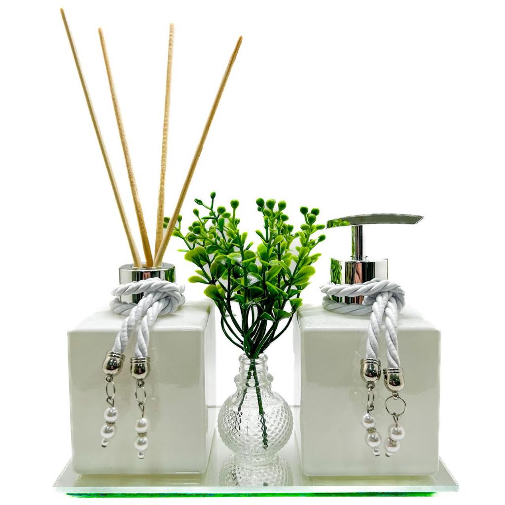 Comprar na ShopeeKit Frascos de Vidro Luxo Lavabo Cubo White - Aromatizador de Ambiente/Saboneteira/Varetas/Bandeja