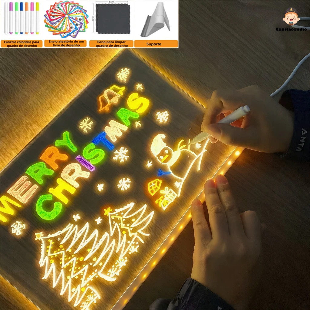 Comprar na ShopeeQuadro Luminoso LED de Mesa com Caneta Apagável - Reutilizável, Ideal para Desenho e Escrita
