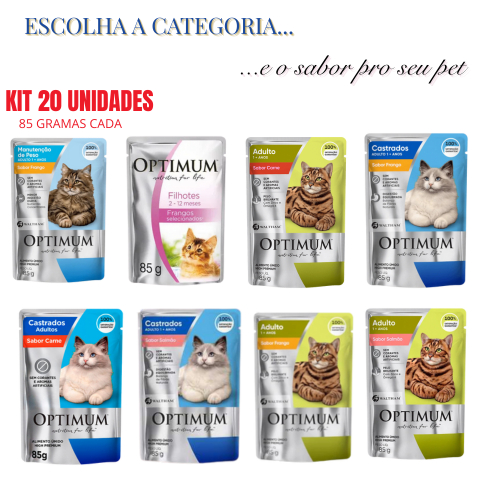 Comprar na ShopeeSACHÊ OPTIMUM 85G PARA GATO SABOR E CATEGORIA A SUA ESCOLHA KIT 20 UN
