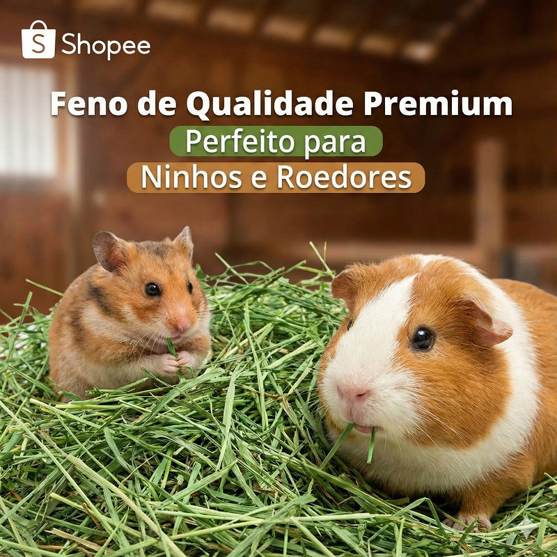 Comprar na ShopeeFeno Premium Verdinho e Cheiroso - Para Roedores, Coelhos, Chinchilas e Ninhos - 500g a 5kg