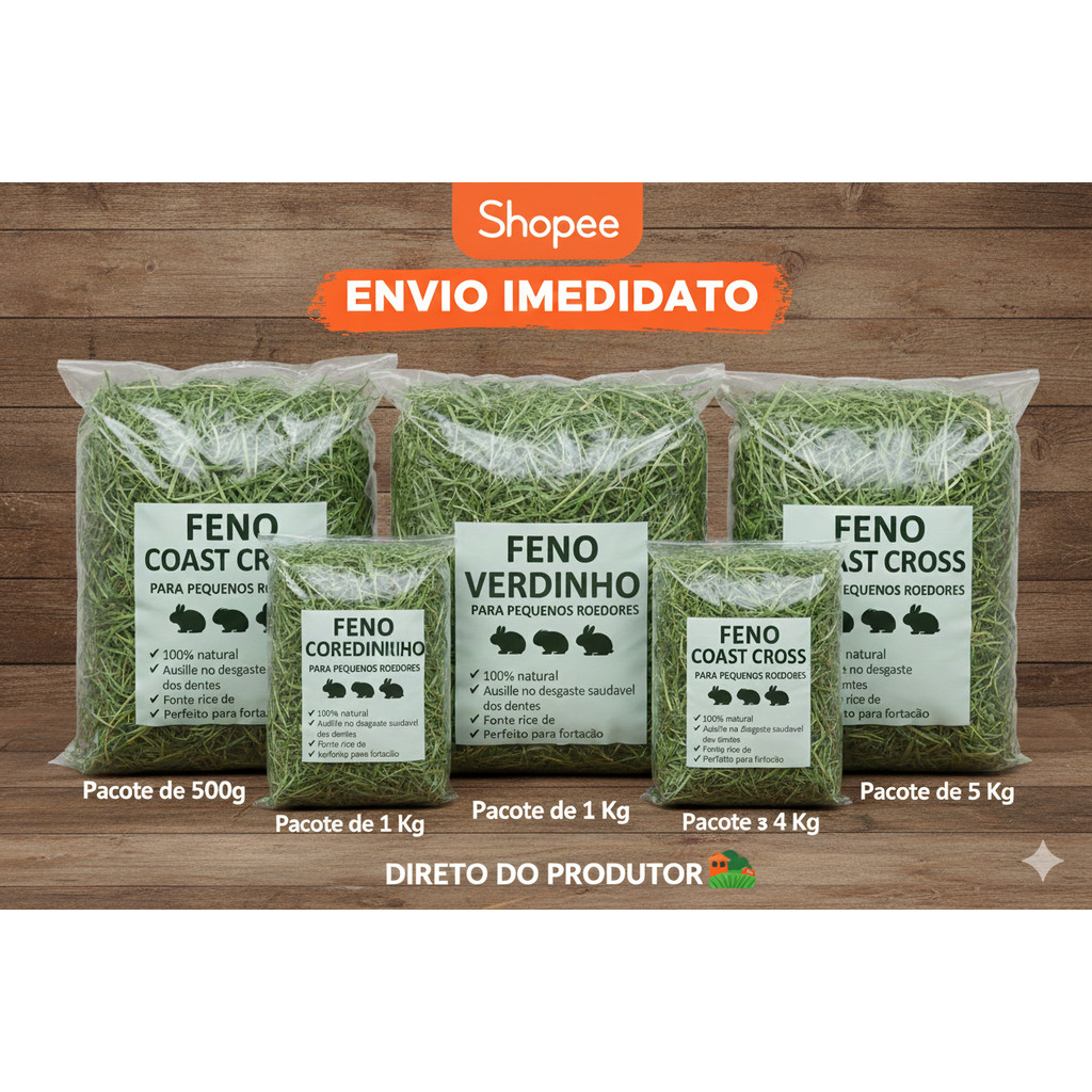Comprar na ShopeeFeno Tifton A para Coelho, Porquinho da Índia e Chinchila - Selecionado e Sem Poeira - Envio Imediato