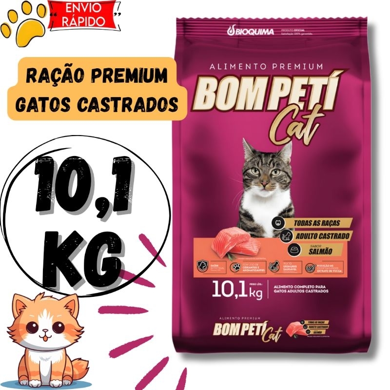 Comprar na ShopeeBom Peti Cat Ração premium para Gatos Castrados sabor Salmão 10,1kg