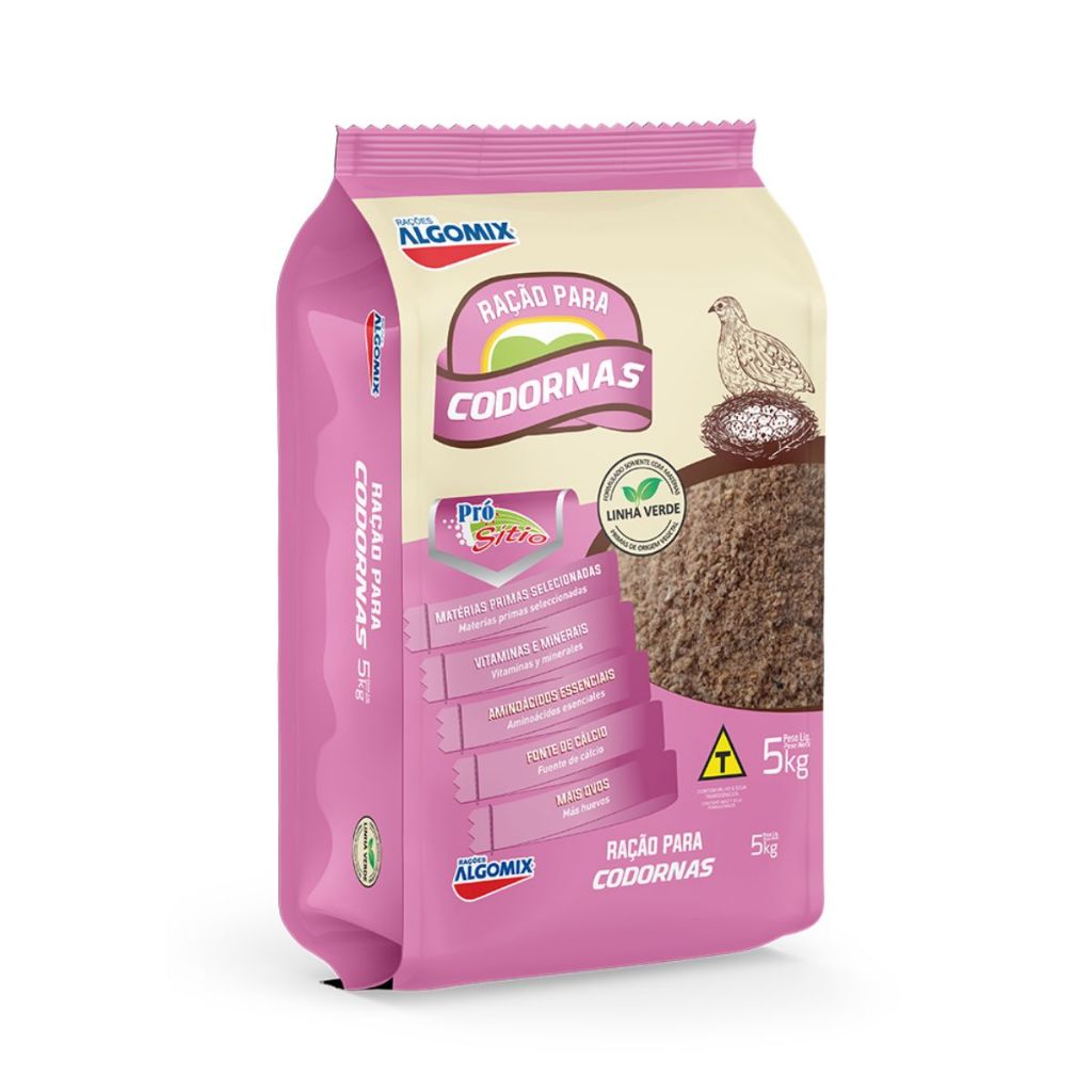 Comprar na ShopeeRação para Codornas de Postura Botadeira em Produção Alta Produtividade Crescimento Ovos Algomix 5KG