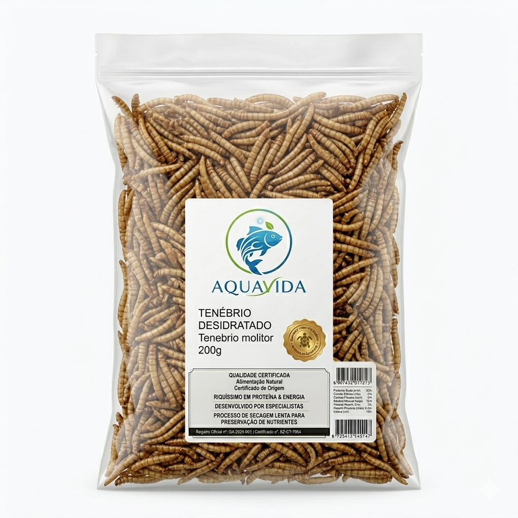 Tenébrio Desidratado Premium 200g AquaVida – Petisco Natural Rico em Proteína para Peixes, Répteis e Aves