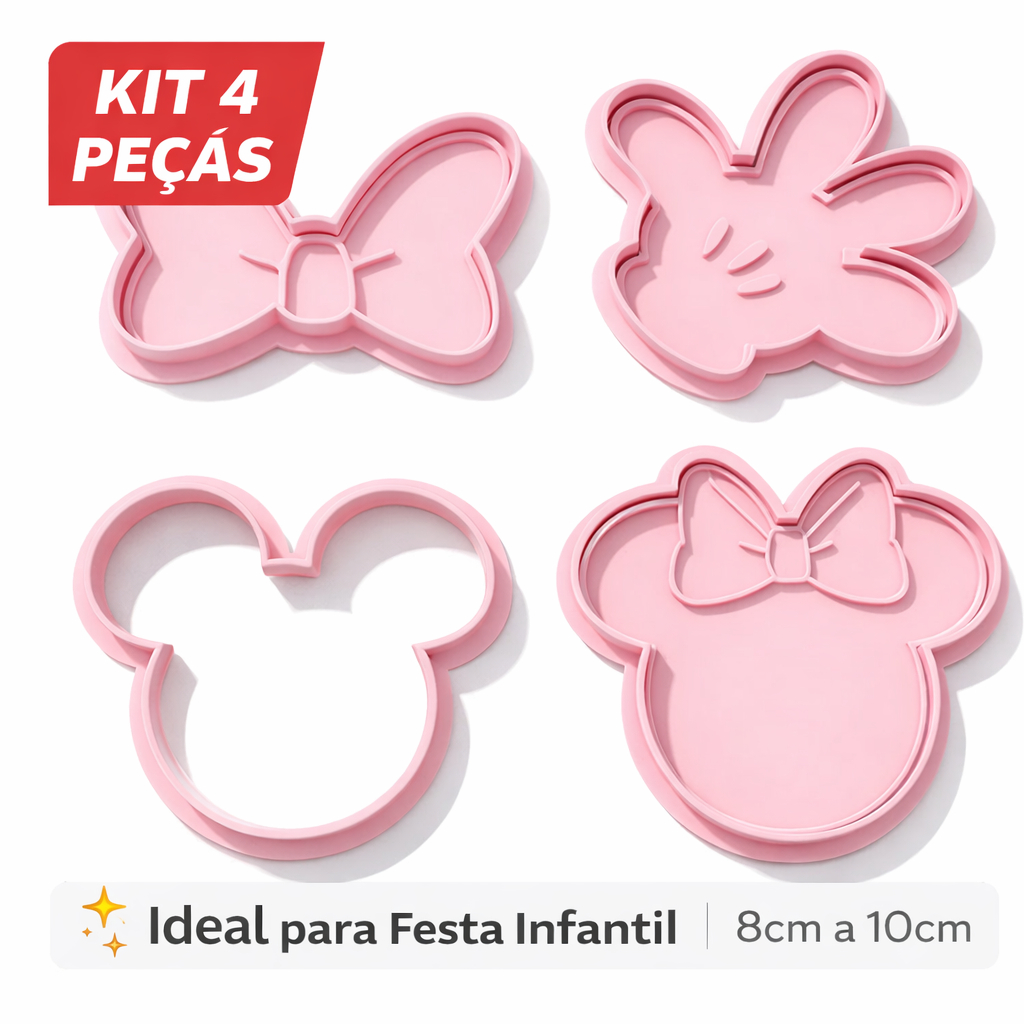 Comprar na ShopeeKit Cortador Minnie e Mickey 4 Peças | Molde para Biscoito, Pasta Americana e Fondant | Festa Infantil