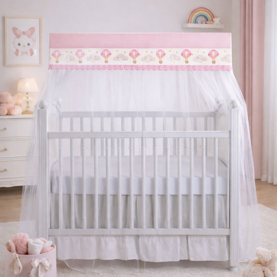 Comprar na ShopeeMosquiteiro Avulso Para Kit Berço Americano Branco Com Gota Rosa