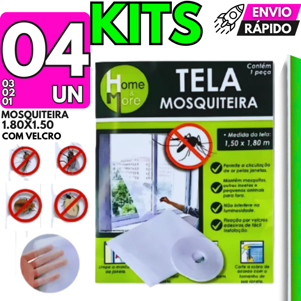 Comprar na ShopeeTela Mosquiteira Janela 1,30x1,50 / 1,50x1,80 Fibra Poliéster Com Velcro Adesivo Anti Mosquito Pernilongo Kit 4/3/2/1