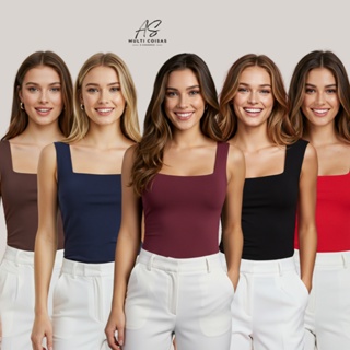 Comprar na ShopeeBlusa Regata Feminina Suplex Forro Duplo Busto Decote Quadrado Alça Larga P063