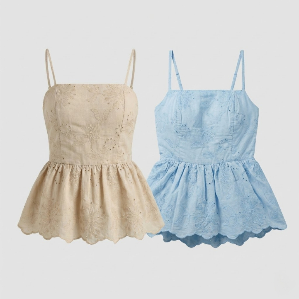 Comprar na ShopeeBlusa Feminina Laise Alcinha Bordada Floral com Babado Peplum Elegante Moda Verão