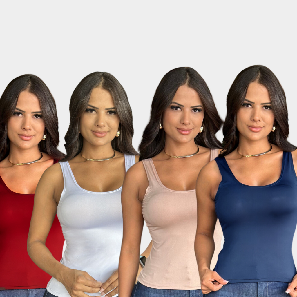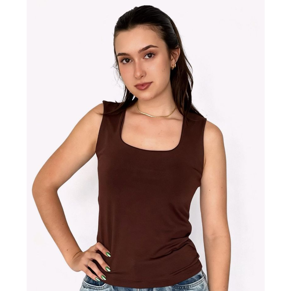Regata Feminina Decote Quadrado Suplex Básica Verão Top