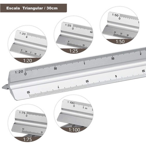 Comprar na ShopeeEscalímetro N°1 Régua Triangular Metal 30 Cm Escalas