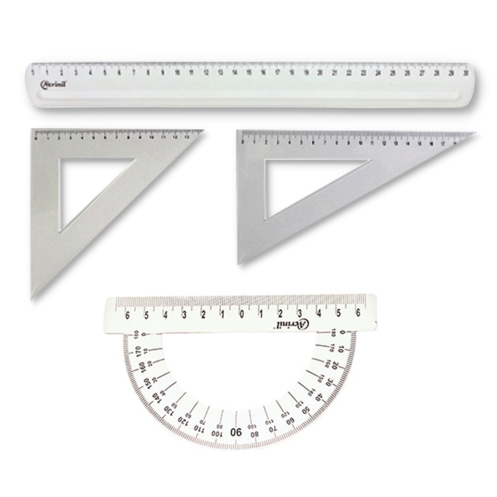 Comprar na ShopeeKit fundamental Acrinil régua 30cm + Transferidor 180 graus + 2 Esquadros
