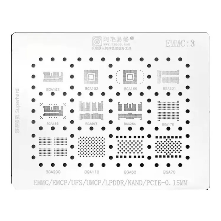 Comprar na ShopeeStencil Bga Para Memoria Emmc/ Emcp/ Ufs/ Nand Emmc 3 0.15mm Amaoe Reballing Furos Quadrados, Ci - Circuito integrado