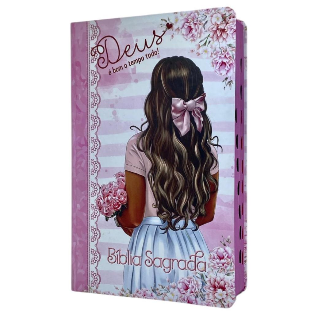 Bíblia Sagrada Capa Semiflexível Letra Gigante Edição Promessas ARC e Índice Feminina Deus é Bom