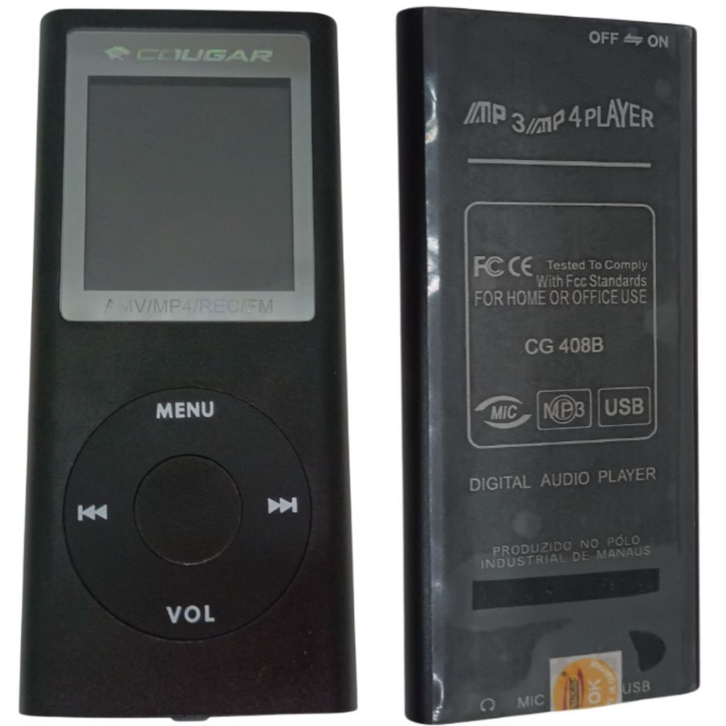 MP4 Cougar CG408B Tela 1,5" Rádio FM Equalizador 7 Modos