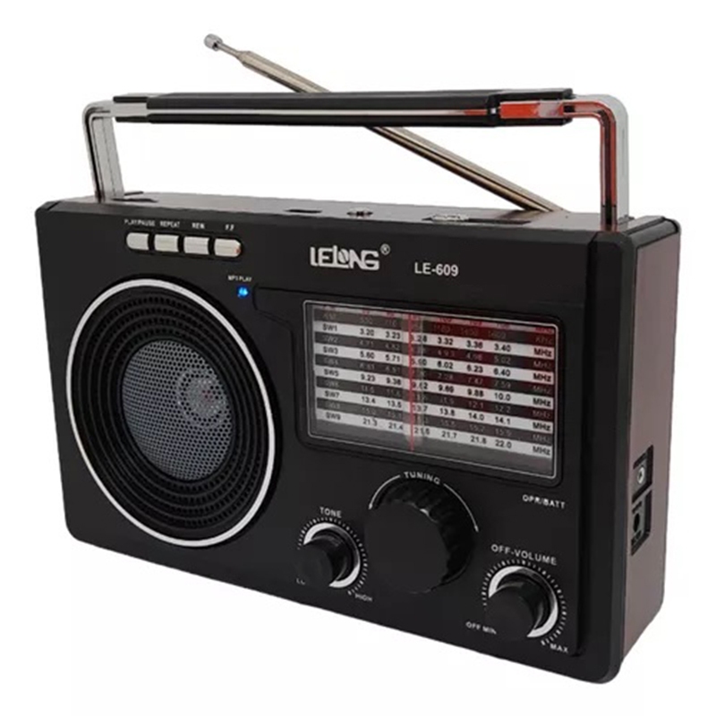 Comprar na ShopeeRádio Portátil Am Fm Recarregável Pilha e Tomada USB Bluetooth LE-609