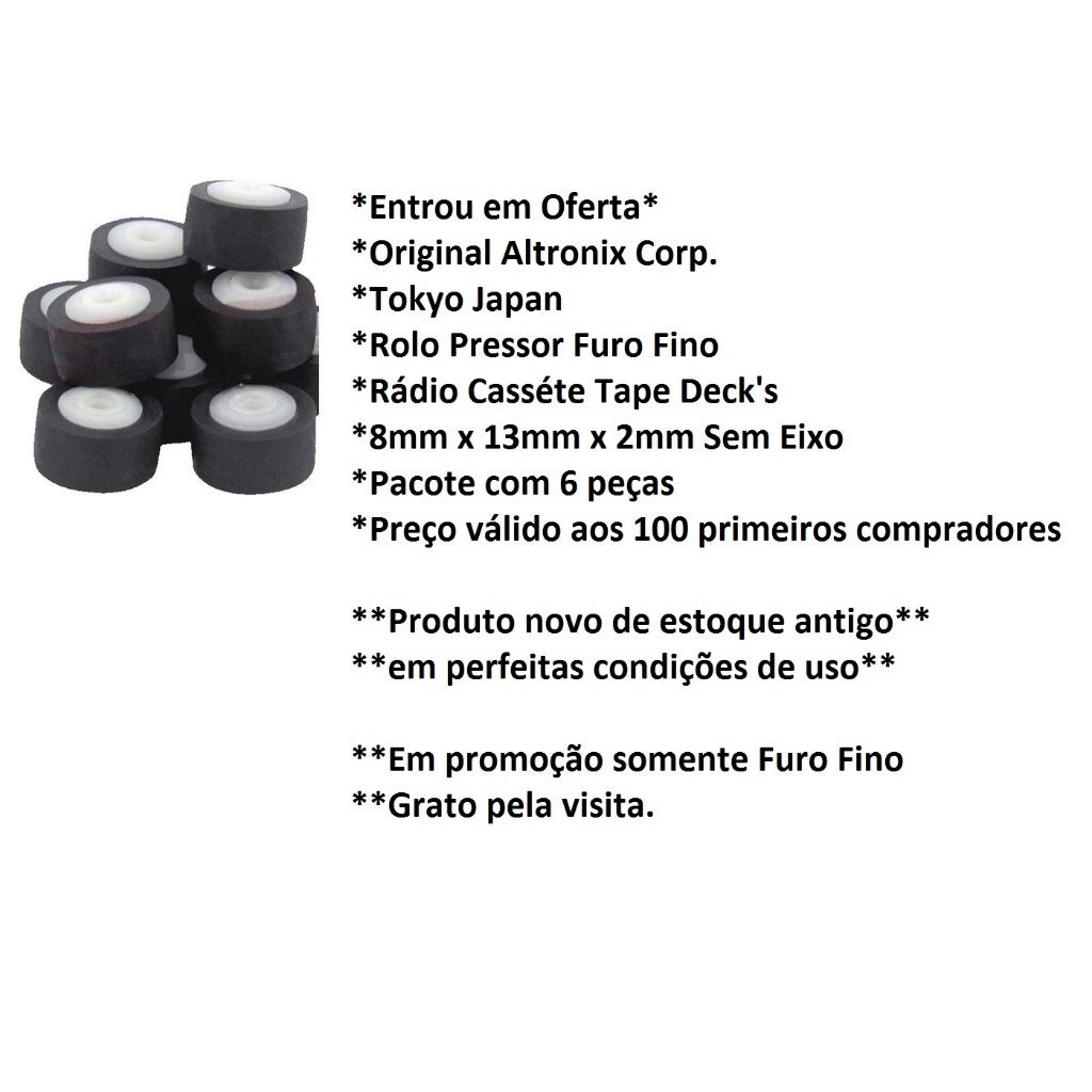 Comprar na Shopee6 x Rolo Pressor Furo Fino ( Promoção ) 8mm x 13mm x 2mm Sem Eixo Rádio Casséte Tape Deck's