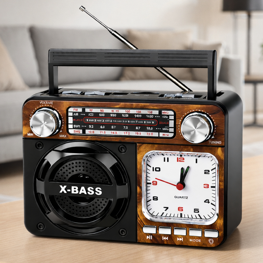 Comprar na ShopeeCaixinha De Som Rádio Relógio Retro Bluetooth Vintage Fm Am Sw Usb Portátil