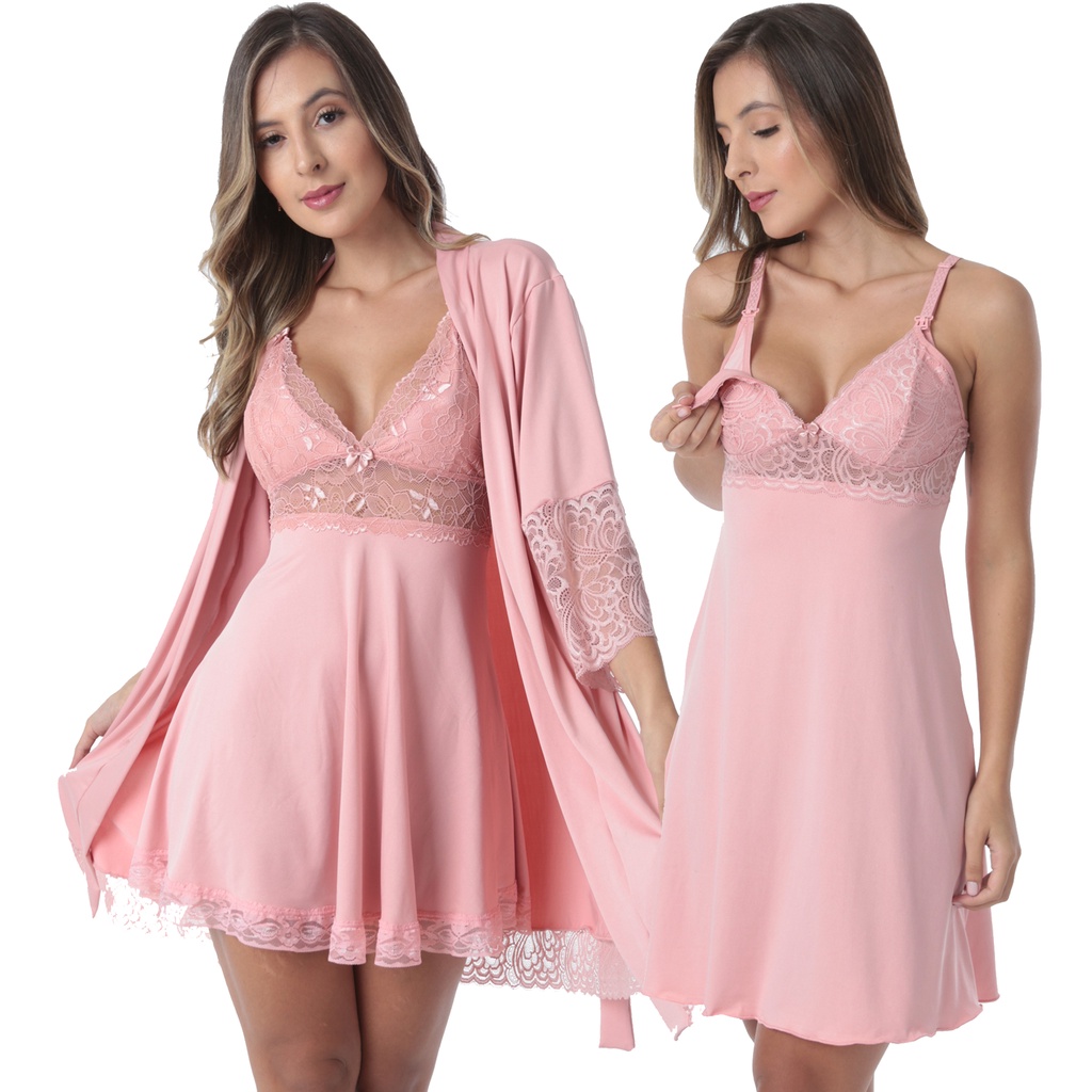 Comprar na ShopeeKit Robe Roupão Com Camisola Amamentação Gestante Pós Parto Conjunto Maternidade