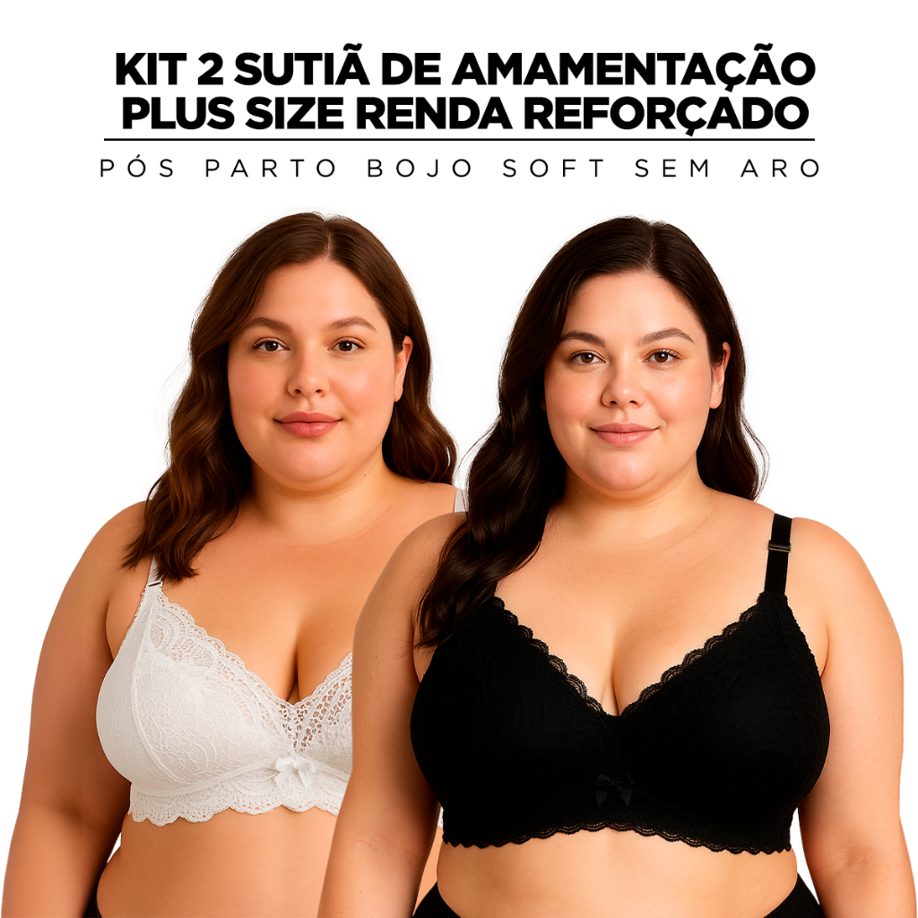 Kit2 Sutiã Amamentação Plus Size Bojo Soft, Sem Aro, Alça Reforçada
