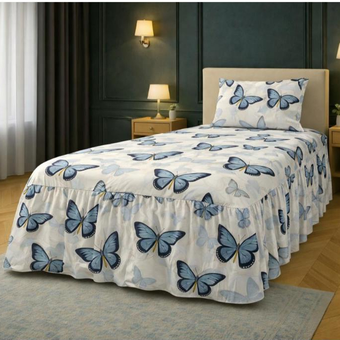 Comprar na ShopeeKit Colcha Solteiro com Babado Toque de Algodão Aveludado com Acabamento na Bainha *Oferta