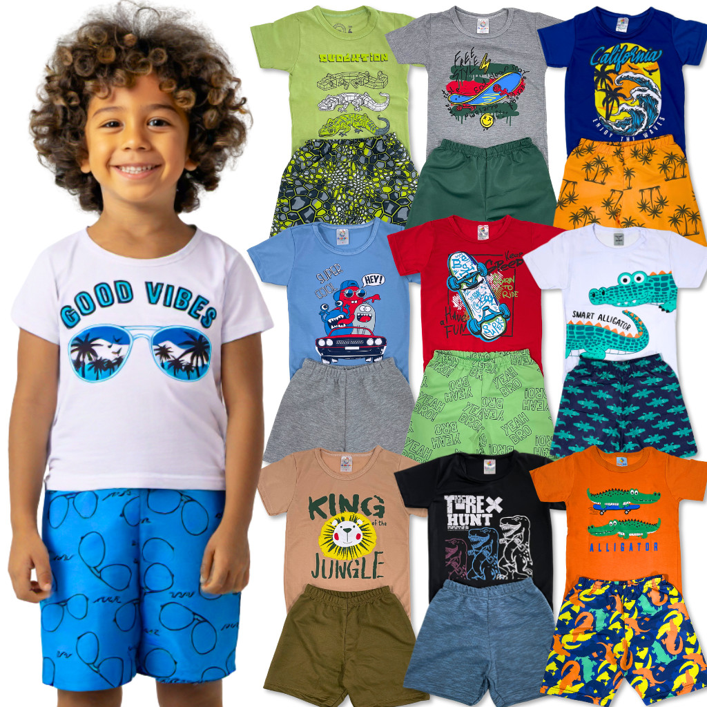 Comprar na ShopeeKit 6 ou 10 Peças 3 ou 5 Conjunto Roupa Infantil Menino Verão Camiseta + Shorts Sortido Estampado