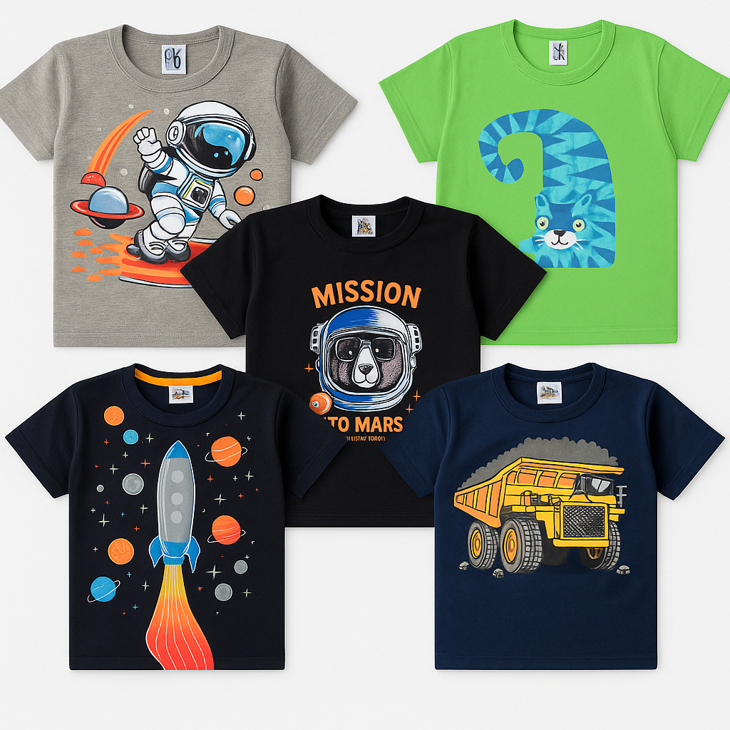 👕 KIT 5 CAMISETAS INFANTIS MASCULINAS TAMANHO 1 AO 12 ANOS 100% ALGODÃO | ESTAMPAS SORTIDAS