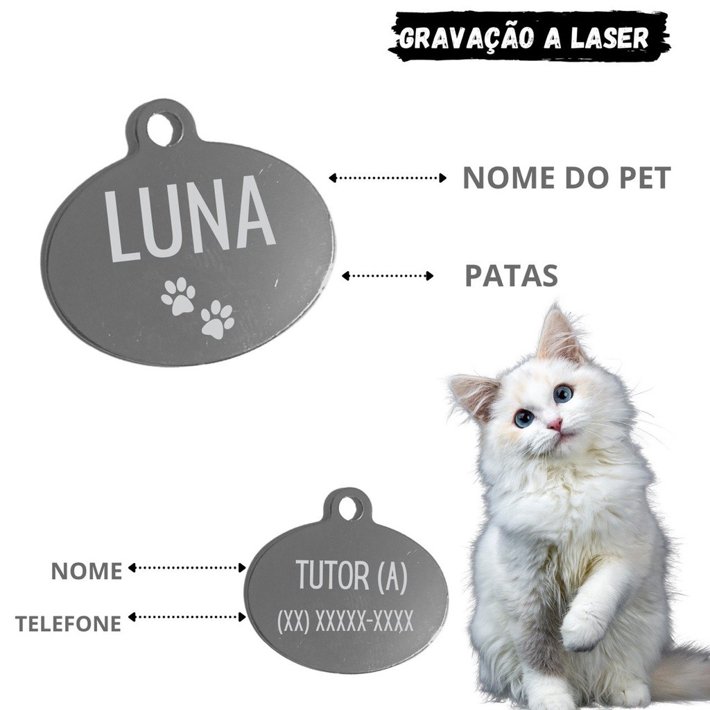 Placa de Identificação Pet Plaquinha Pingente personalizada Cachorro Gato