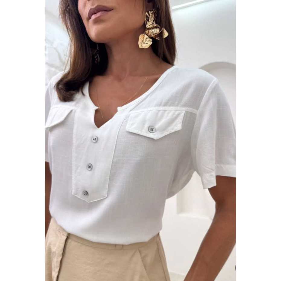 Comprar na ShopeeBlusa Camisa Feminina Casual Social com Botão Manga Curta em Viscolinho