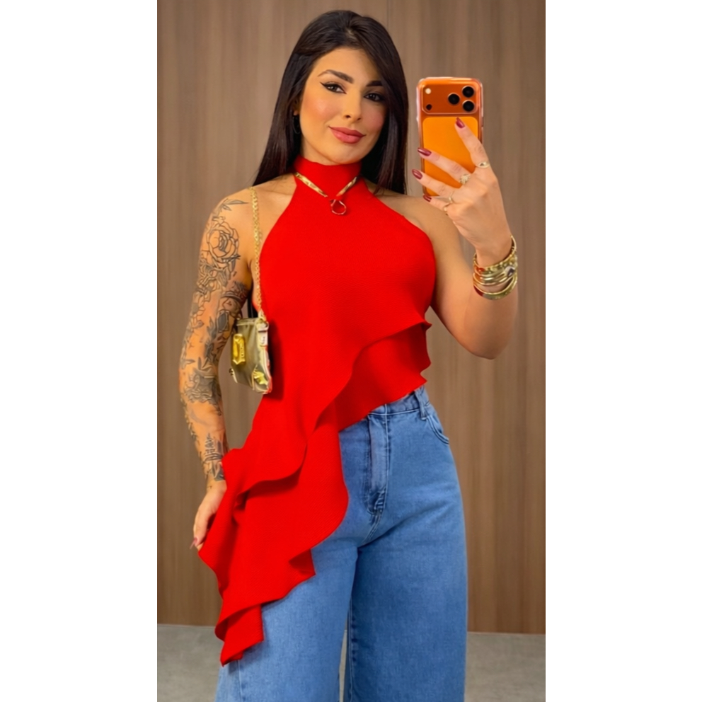 Blusinha Manga Longa Assimétrica Um Ombro Mula Manca Basica Blusa Ribana Elegante Caimento perfeito