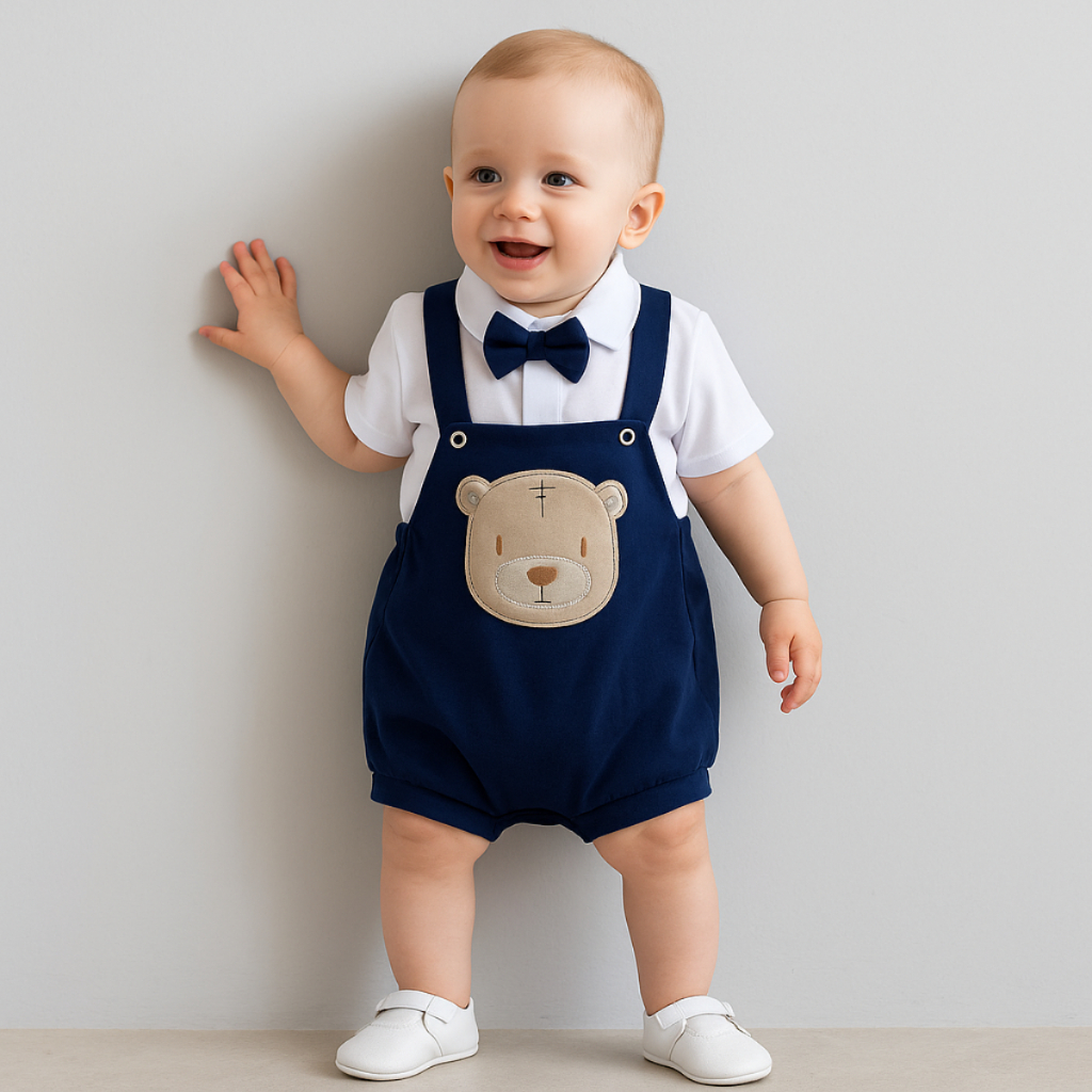 Comprar na ShopeeConjunto Romper Bebê Menino Social em Malha com Bordado + Gravata Borboleta em 2 Peças