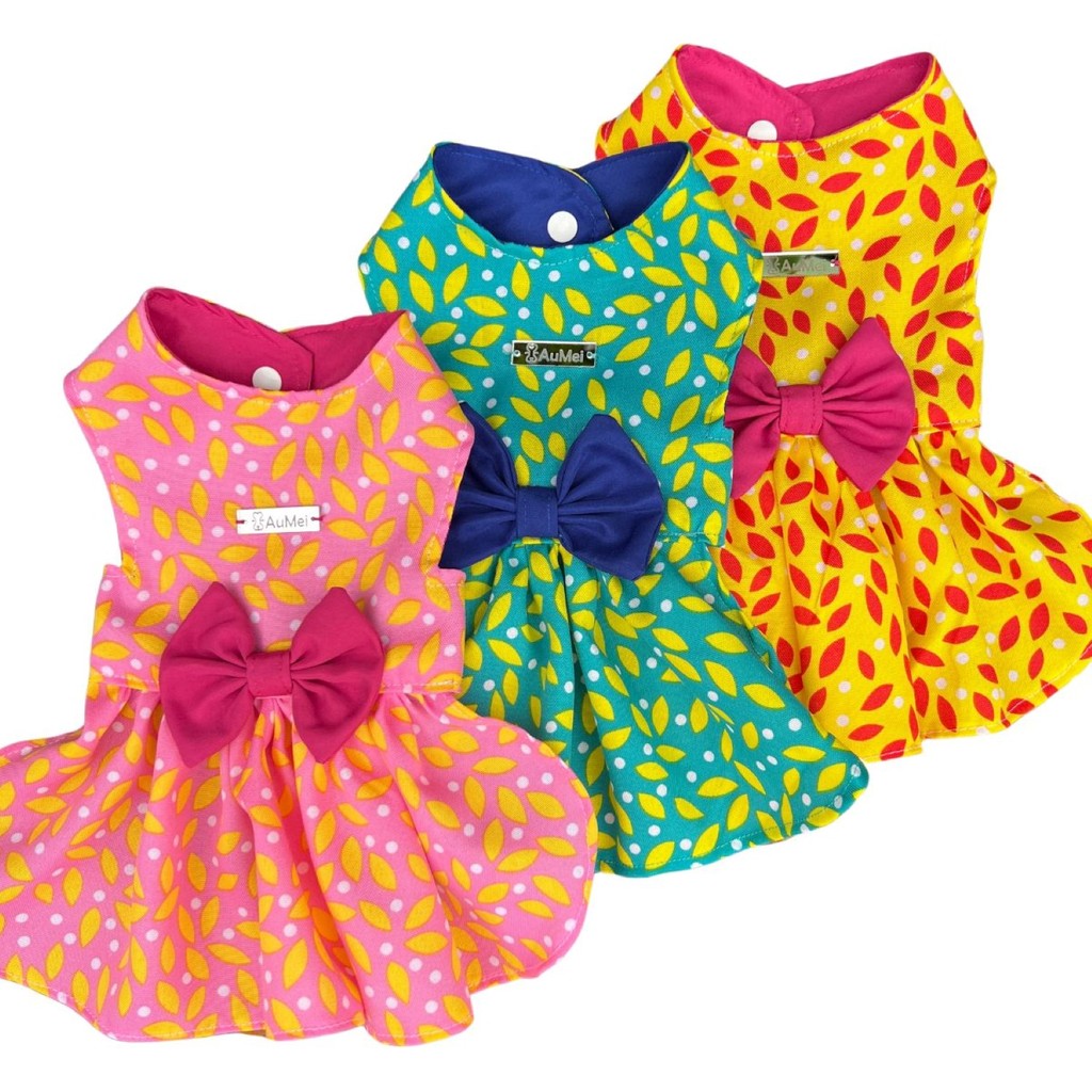 Vestido Floral Pet Verão Roupinha Cachorro Gato Aumei Laço