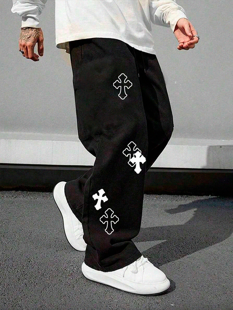 Calça Reta Moletom Baggy Masculino Cruz Streetwear 100% Algodão Feminino Unissex Estilo Urbano Rua