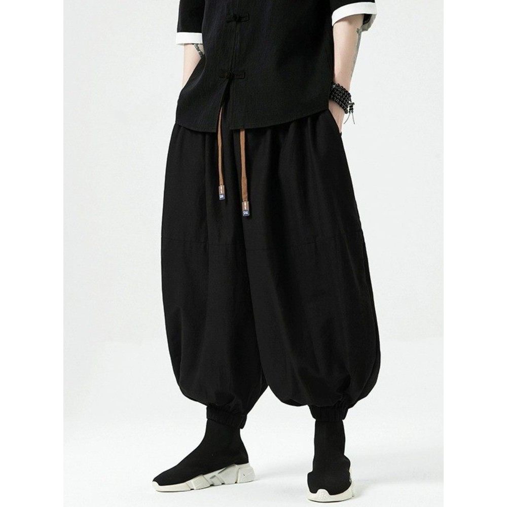 Bloomers masculino solto calças de perna larga novo estilo chinês terno calças de linho algodão calças de linho Harem ca