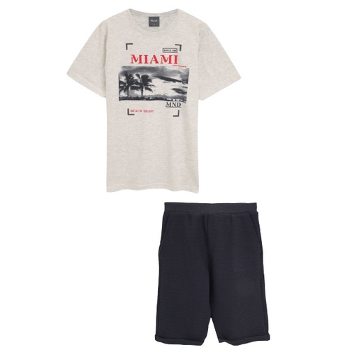 Conjunto Infantil Brandili Mundi Camiseta “Miami” Off-White + Bermuda Cinza