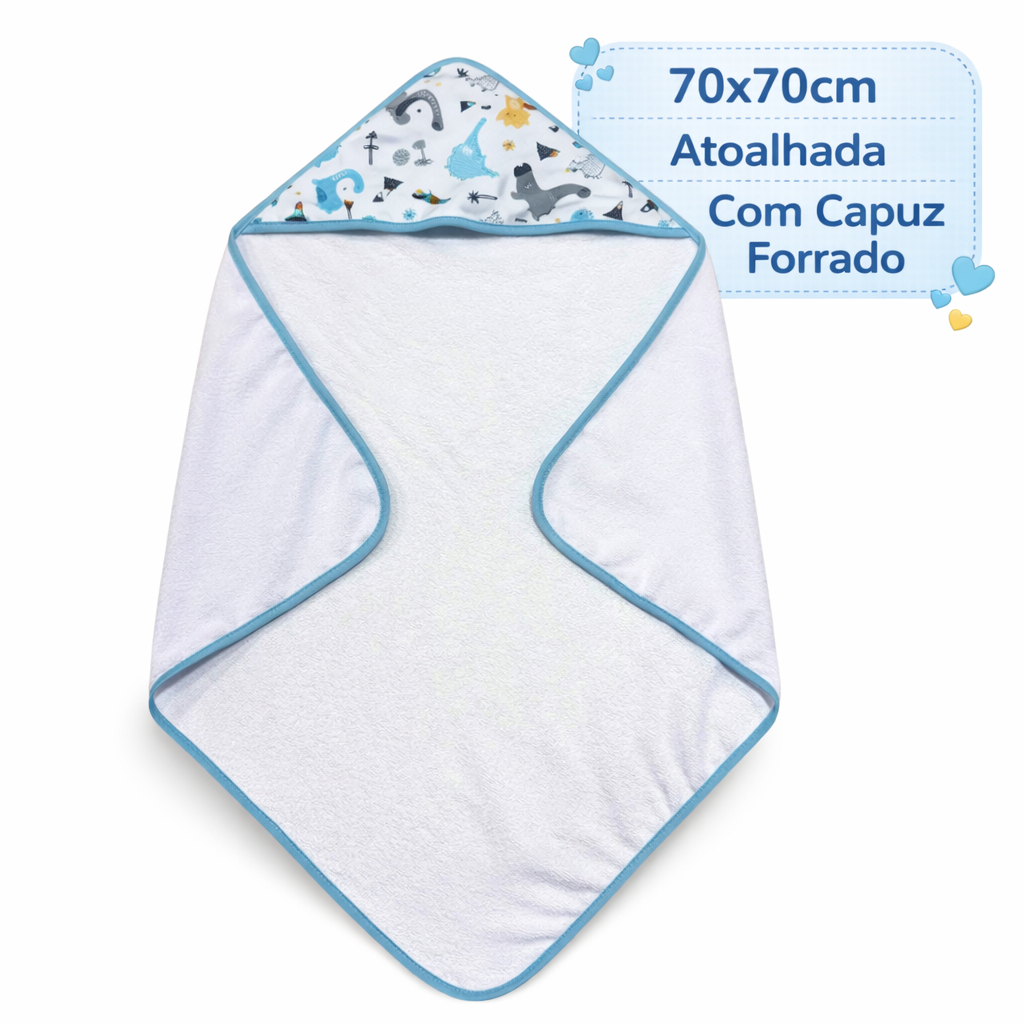 Toalha de Banho Bebe Com Capuz Forrado 70x70cm Menino Menina