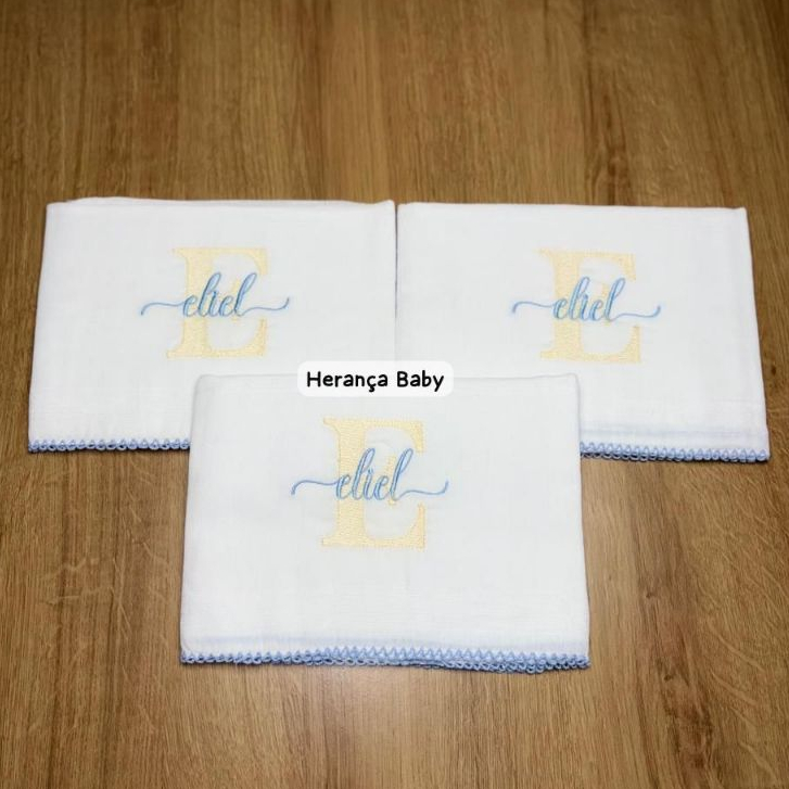 Comprar na ShopeeKit de Fraldas de Boca Personalizado com Nome Contendo 3 unidades com medida de 37cm x 50cm