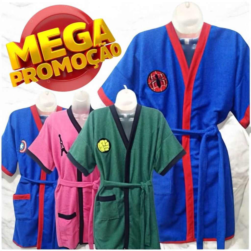 Roupão de Banho Infantil Atoalhado / Personagens Tamanhos 2,4,6,10,12,14 e 16 Anos e Adulto