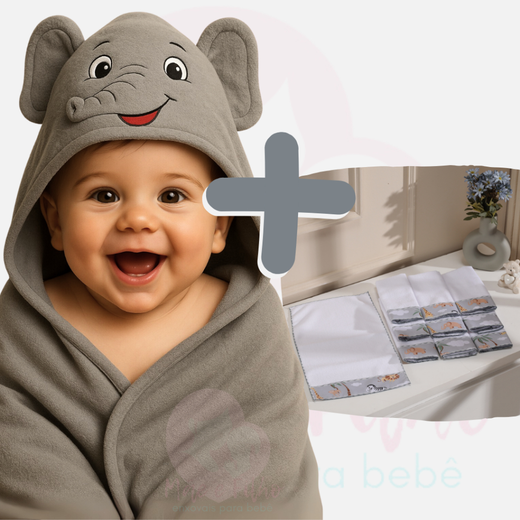 Comprar na ShopeeKit Toalha Banho Felpuda com Capuz Forrada + Lencinho de boca + Fralda Passeio Personalizada