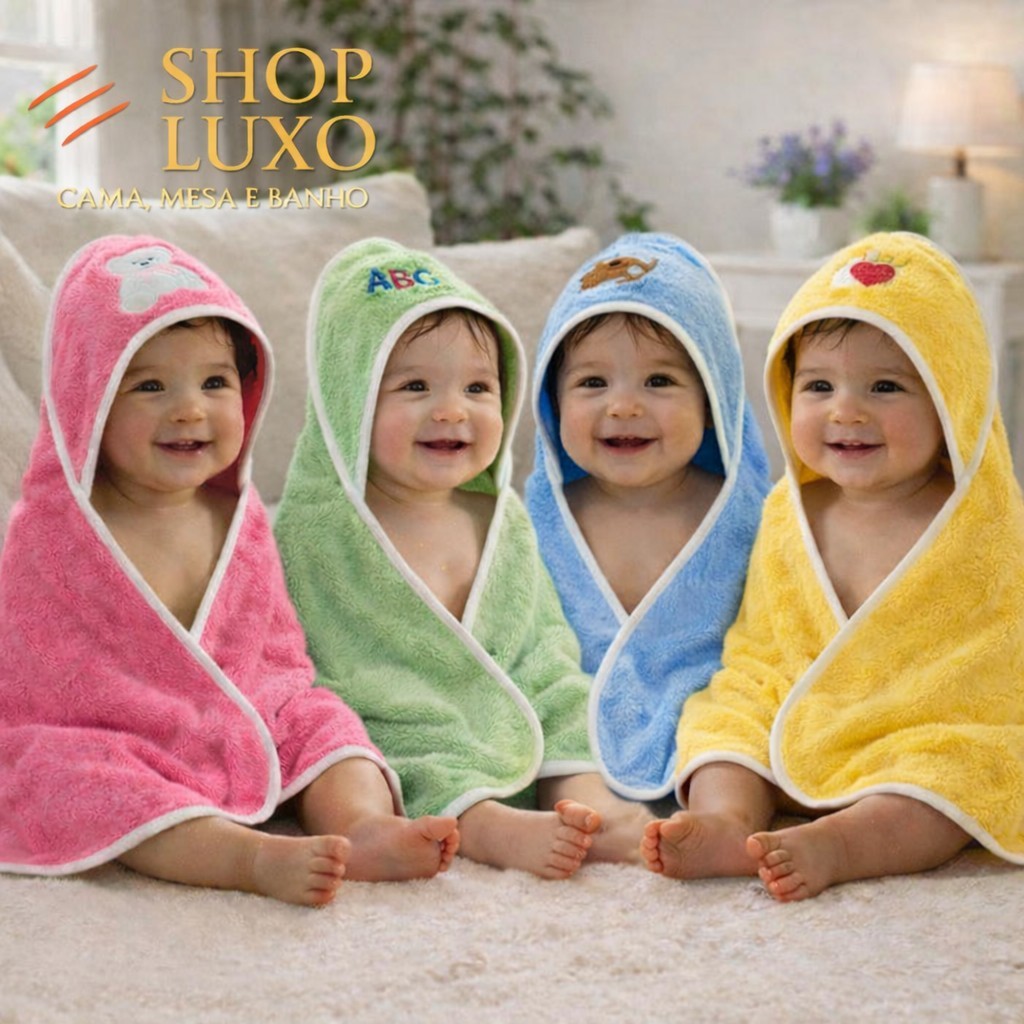 Comprar na ShopeeKit 4 Toalhas de Banho Bebê Infantil com Capuz Felpuda 60x60cm | Macia e Super Absorvente