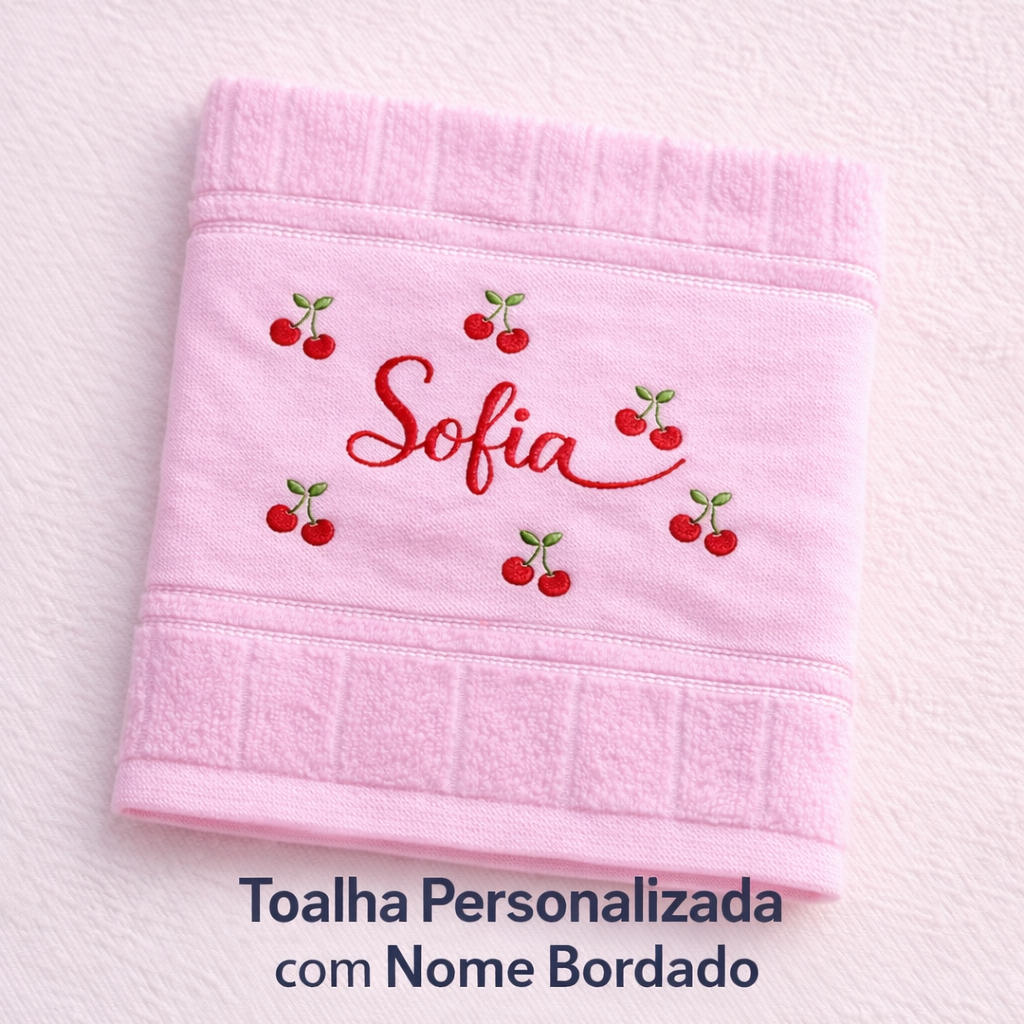 Comprar na ShopeeToalha de Boca Personalizada e Bordada com o Tema de Cerejas 30x45cm