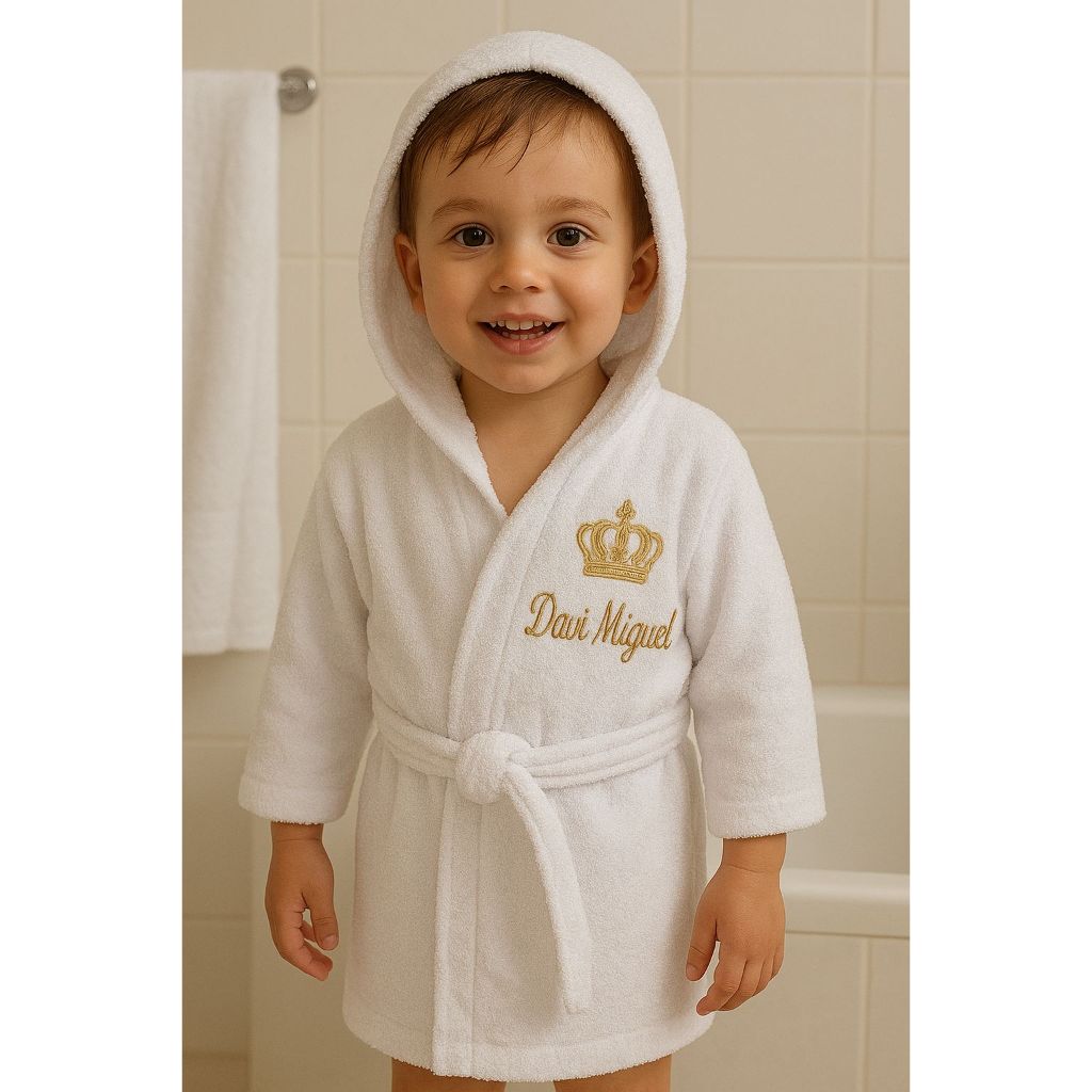 Comprar na ShopeeRoupão Infantil Personalizado Bordado Nome Atoalhado com Capuz Bebê Pós Banho