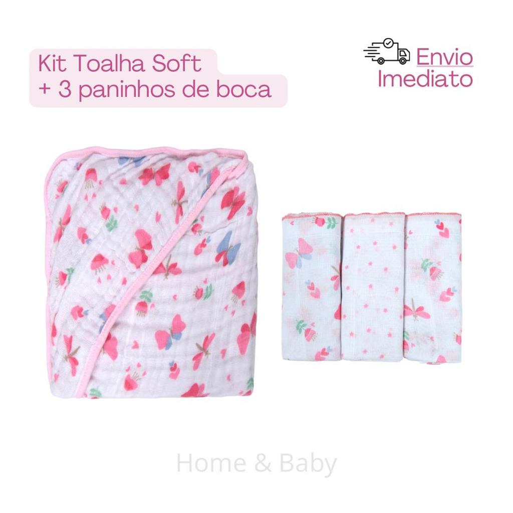 Comprar na ShopeeToalha de Bebê Soft com Capuz e 3 panos de boca Menina Menino