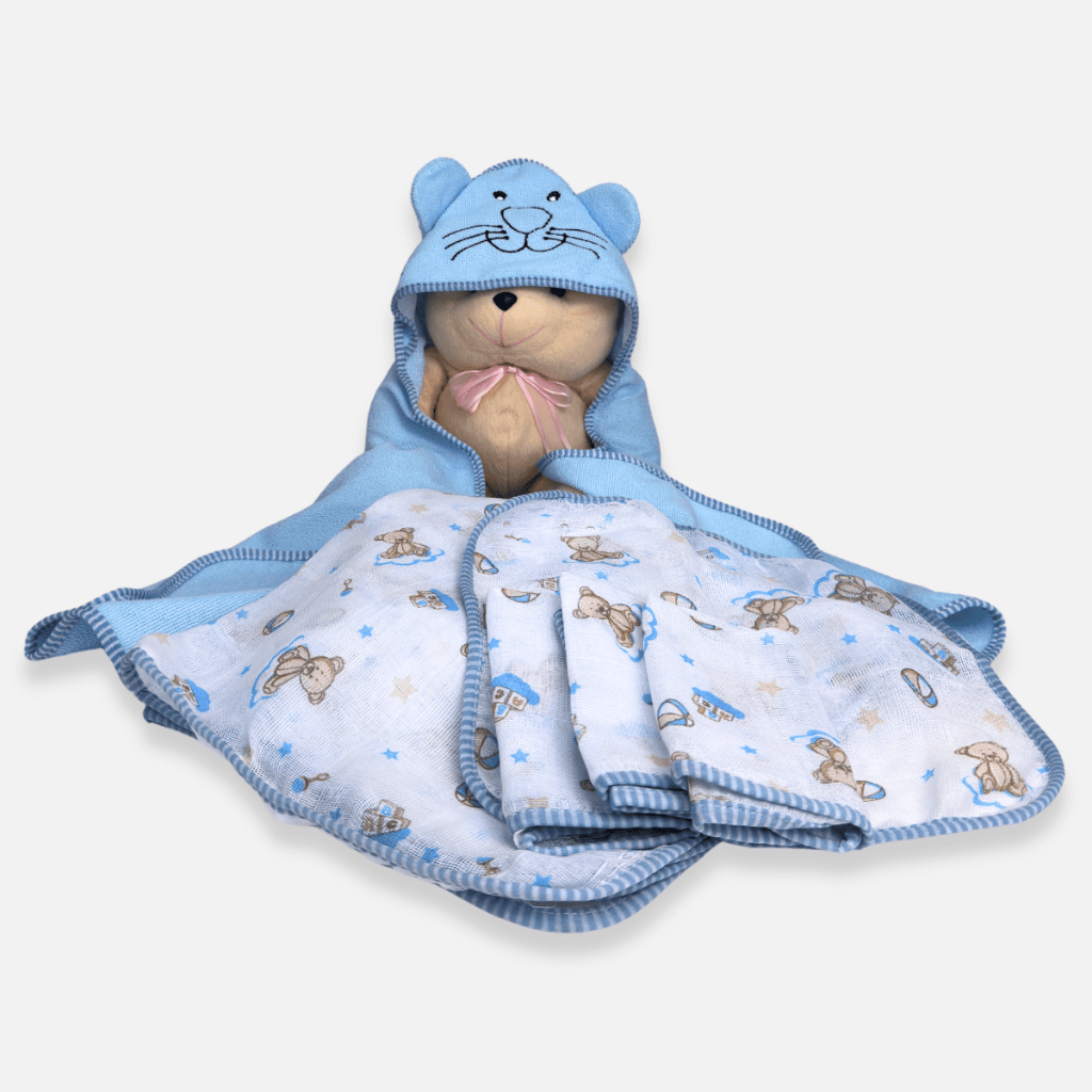 Comprar na ShopeeKit Enxoval Bebê 6 Peças 1 Toalha Banho Capuz Bordada + 4 Fraldas Boca + 1 Manta Algodão Estampada