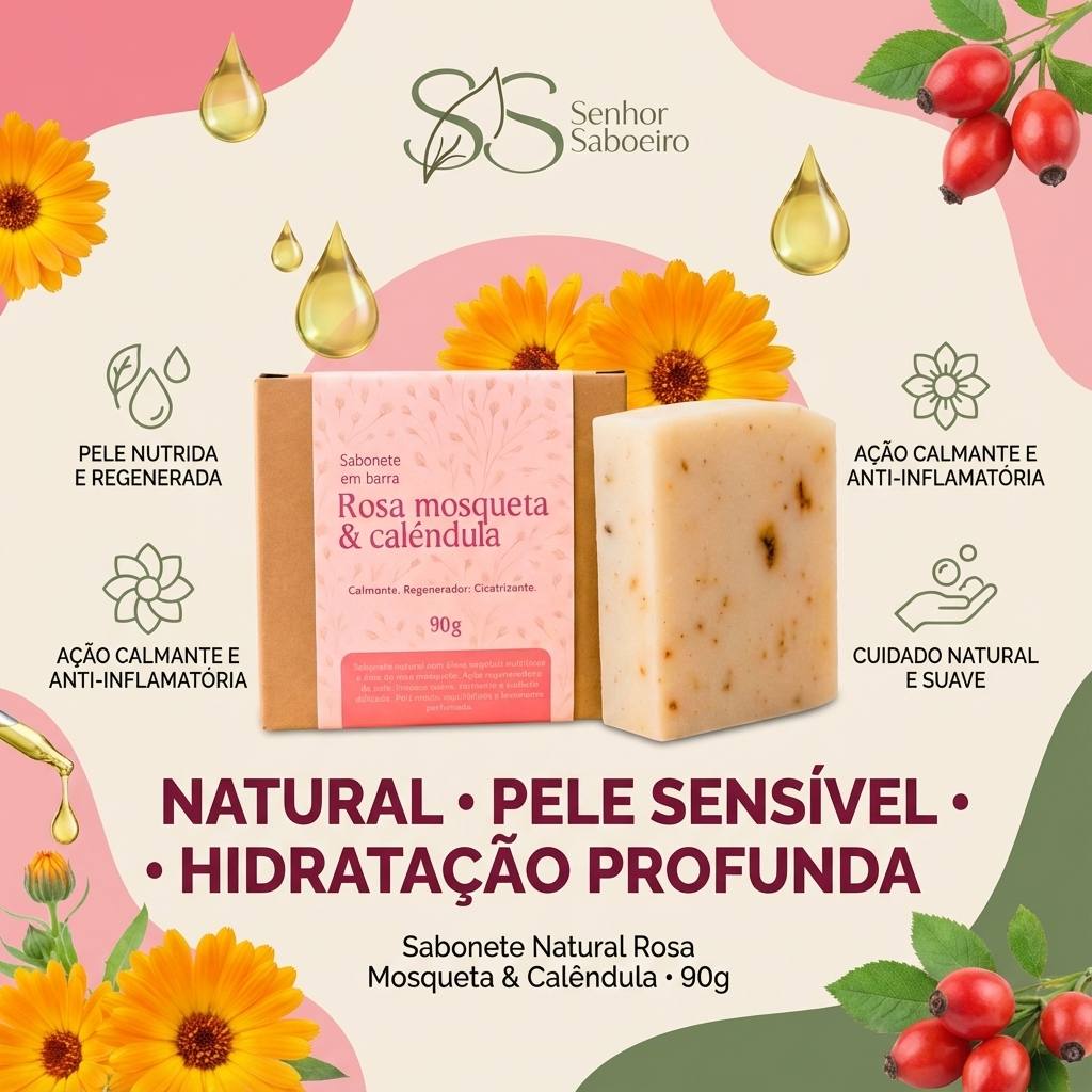 Comprar na ShopeeSabonete Estimulador Colageno Regenerador Rosa Mosqueta e Calêndula 90g