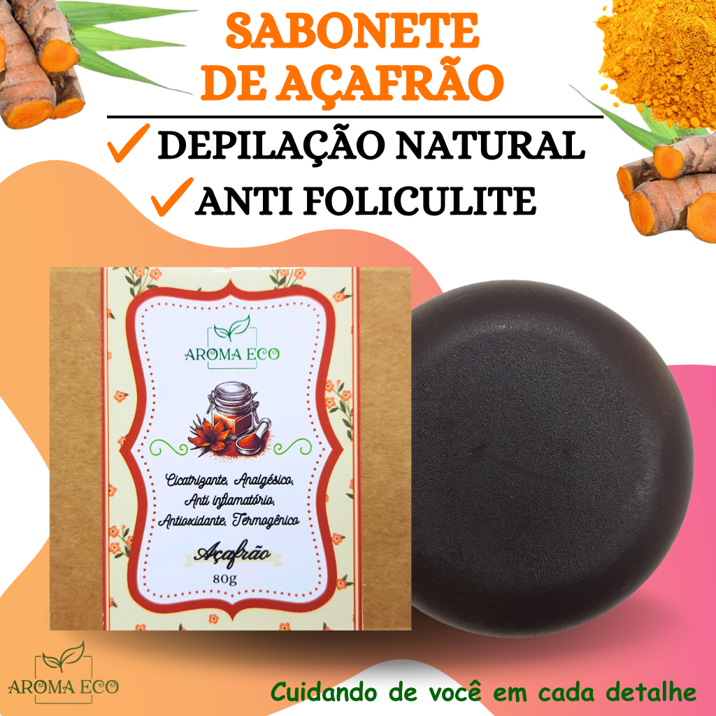 Comprar na ShopeeSabonete de Açafrão Depilação natural Anti Foliculite Clareador 90g - Skin Care
