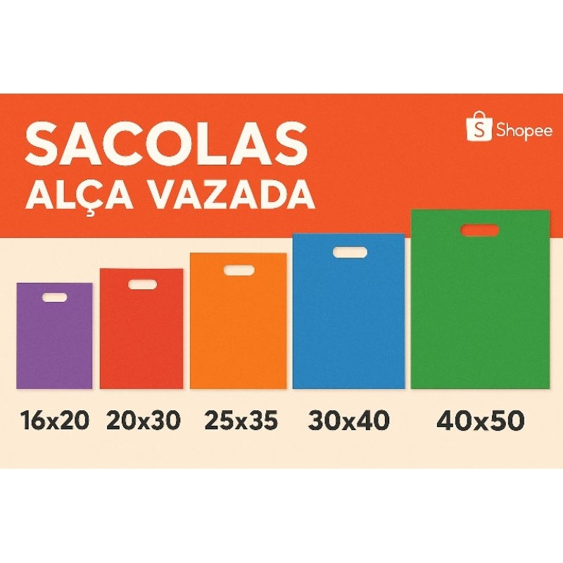 Comprar na Shopee100 Sacolas Plásticas - 16x22 / 20x30 / 25x35 / 30x40 / 40x50 - Boca de Palhaço / Alça Vazada