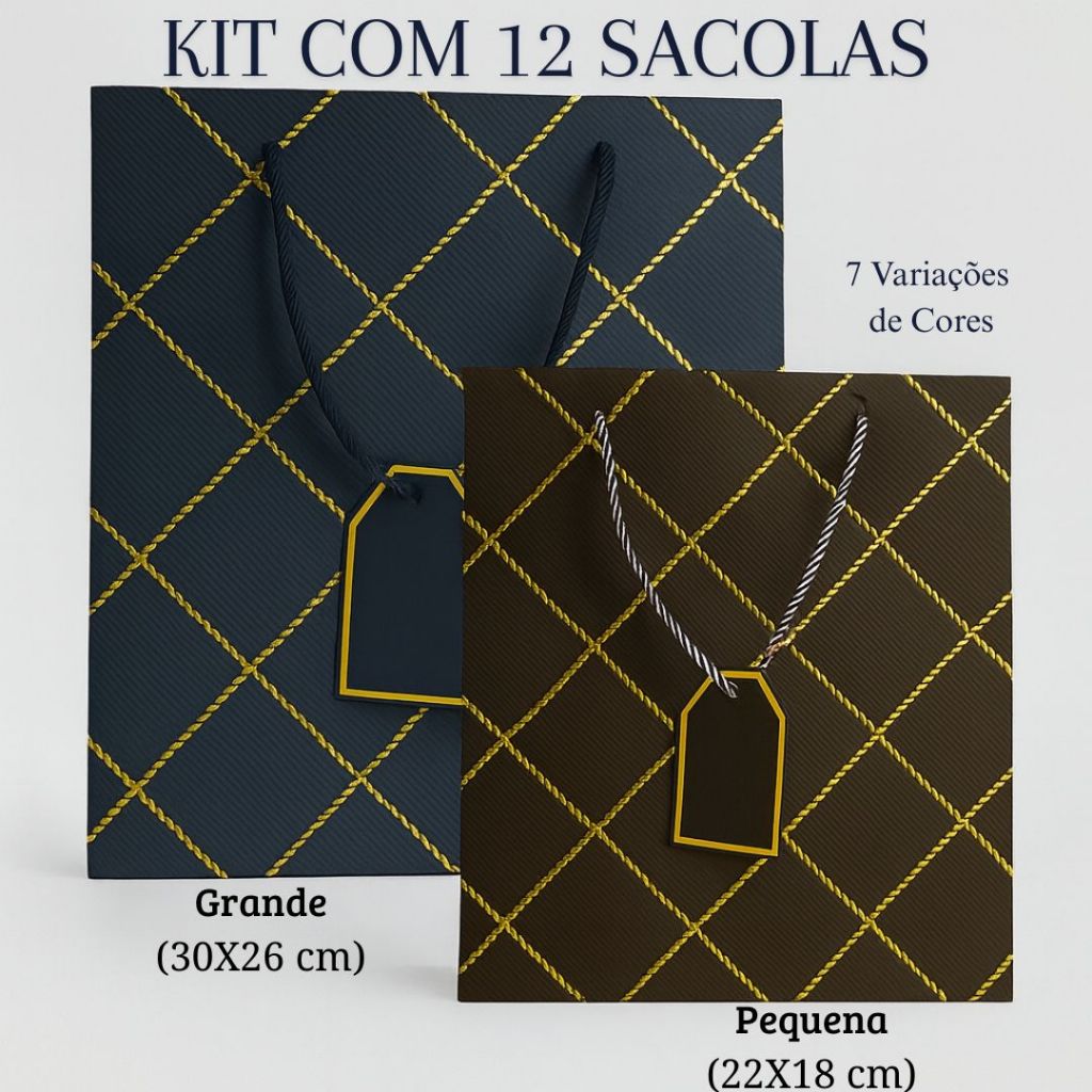 Comprar na ShopeeKit Pacote com 12 Sacolas Luxo para Presente Trançada Pequena(22X18cm) ou Grande (30x26cm)