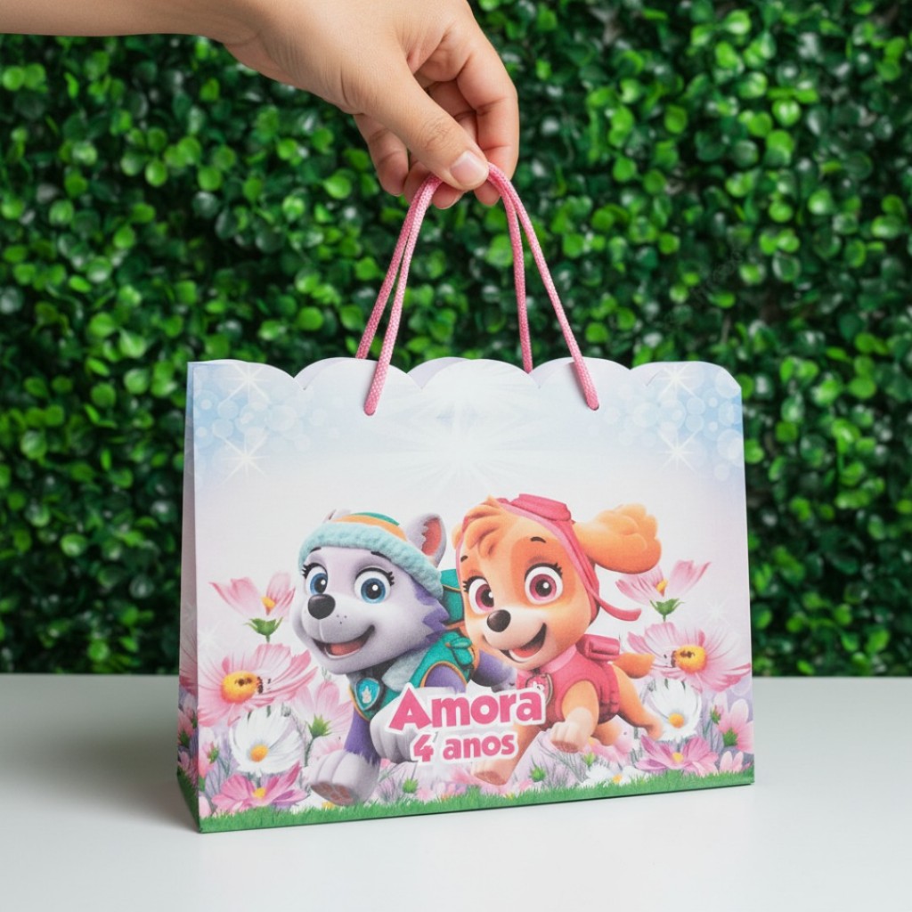 10 Sacolinhas Personalizadas Patrulha Canina Skye e Everest (20x15x5cm)
